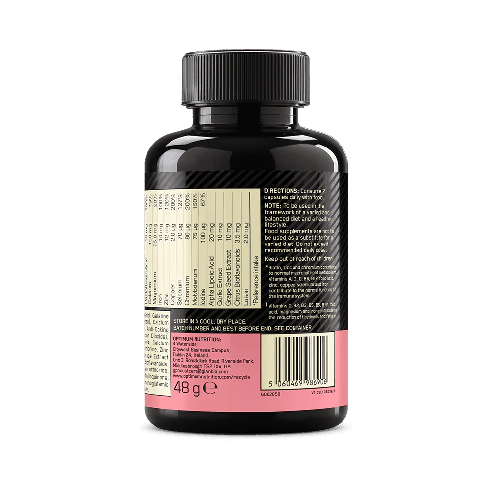 Opti-Women® is a premium multivitamin designed to meet the unique nutritional needs of active women. Packed with essential vitamins, minerals, and plant extracts, it supports energy, metabolism, immune function, and overall wellness, helping you stay at your best—whether you're training, working, or on the go.